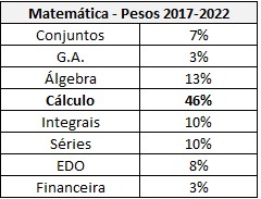 Cabe uma ressalva importante quanto ao conteúdo de Matemática Financeira: este havia parado de cair da prova entre 2004 e 2013, mas agora retorna a cair nas provas. Nos exames 2017 e 2019 houve uma questão inteira de Matemática Financeira (isto é, 7% da prova) mostrando que para os exames futuros a importância dessa matéria será provavelmente bem maior que o 1% da série histórica.